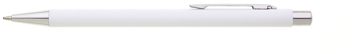 Tenká, jednoduchá propiska s bílým pogumovaným tělem a chromovými doplňky. Náplň X20, modře píšící.