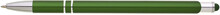 Tenká zelená hliníková propiska s chromovými doplňky a touchem v barvě těla. Náplň X20 modře píšící.