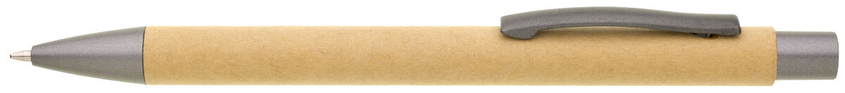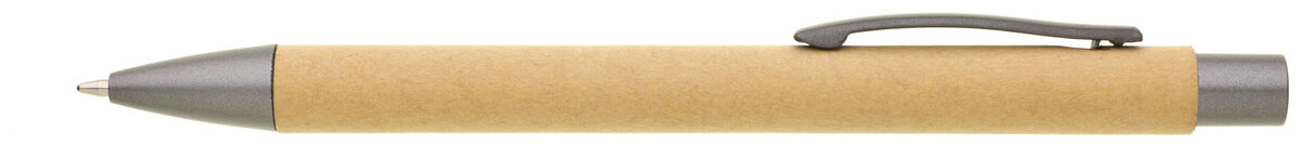 Propiska s tělem z natur papíru potaženým potiskem imitace bambusového povrchu a kovovými tmavými doplňky. Náplň X20 modře píšící. Kolekce SAVE THE NATURE.