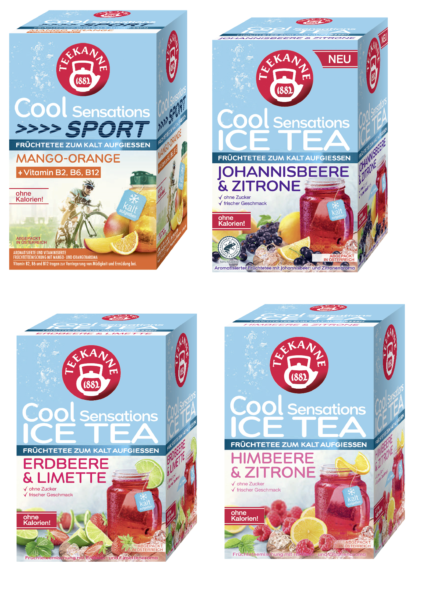 TEEKANNE Cool Sensations je lahodný a osvěžující ovocno-bylinný čaj, který byl speciálně vyvinut pro přípravu se studenou vodou. TEEKANNE Cool Sensations nabízí osvěžující potěšení z pití bez kalorií a bez cukru.
