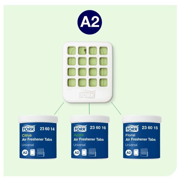 Zásobník na závěsný osvěžovač vzduchu Tork 562500, bílý, systém A2 je kompaktní a snadno instalovatelný systém pro Tork závěsné osvěžovače vzduchu v kvalitě Universal. Nabízí diskrétní řešení tam, kde nelze závěsný osvěžovač zavěsit na potrubí.