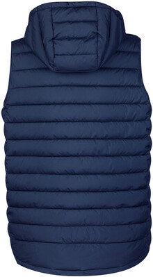 Větru a vodě odolná vesta na zip s bočními kapsami na zip a nastavitelnou kapucí. S polyesterovým pouzdrem RPET. 100% RPET polyester s výrazným štítkem RPET.