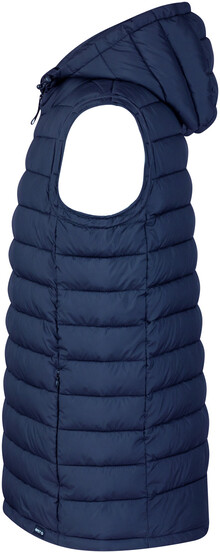 Větru a vodě odolná vesta na zip s bočními kapsami na zip a nastavitelnou kapucí. S polyesterovým pouzdrem RPET. 100% RPET polyester s výrazným štítkem RPET.