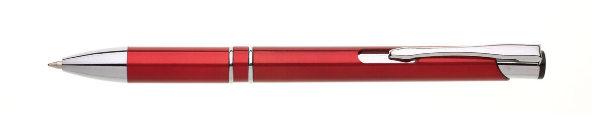 Plastové propisovací pero OIRA BLACK - červené. Pero je zdobené dvěma stříbrnými proužky. Na těle je zdobeno oválným výřezem. Pero má náplň velkoobsahovou, černě píšící.