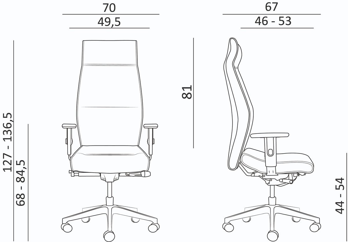 křeslo konstruované pro vysoké a těžké postavy s aplikací 24/7 – intenzivní použití, celočalouněný, extra vysoký opěrák s ergonomickým tvarem, čaloun sedáku poskytuje maximální pohodlí pro dlouhodobé sezení, studená pěna s vysokou odolností, synchronní mechanismus SYN-HD s pětinásobnou aretací nastavení síly protiváhy v rozpětí protiváhy hmotnosti 60–200 kg, ovládání na boku sedáku, výškově nastavitelné područky s měkkou dotykovou plochou, mechanismus pro nastavení hloubky sedáku, potah s odpovídající odolností, nesnímatelný – prošívaný, kolečka pr. 60 mm pro všechny typy povrchů, ALU kříž leštěný nebo lakovaný černou práškovou barvou, záruka 36 měsíců ve vícesměnných provozech – platnost je podmíněna provedením pravidelné, velmi snadné údržby, nosnost 200 kg, český výrobek, záruka 36 měsíců