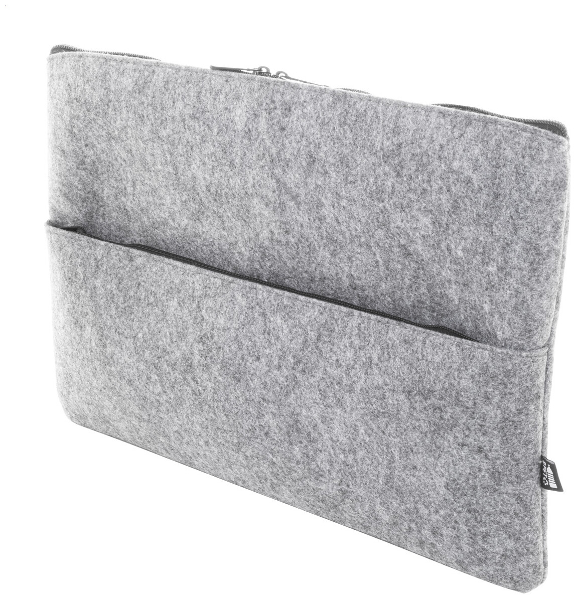 Taška na notebook z RPET plsti s přihrádkou na zip a přední kapsou. Vhodné pro notebooky do 15". S výrazným štítkem RPET.
