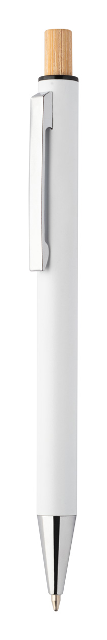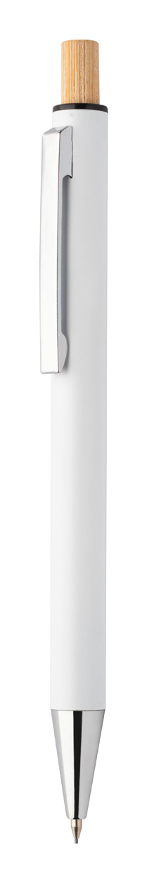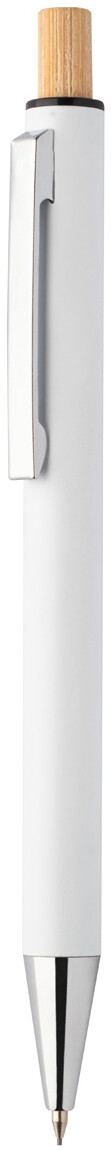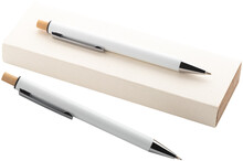 Sada pera z recyklovaného hliníku s kuličkovým perem a mechanickou tužkou s bambusovými knoflíky. S modrou náplní a 0,7 mm tuhy. V kraftové papírové krabici.