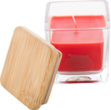 Vosková svíčka na rostlinné bázi ve skleněném držáku s bambusovým víčkem. S 50 gramy vosku. Doba hoření: 8 hodin. V kraftové papírové krabici.