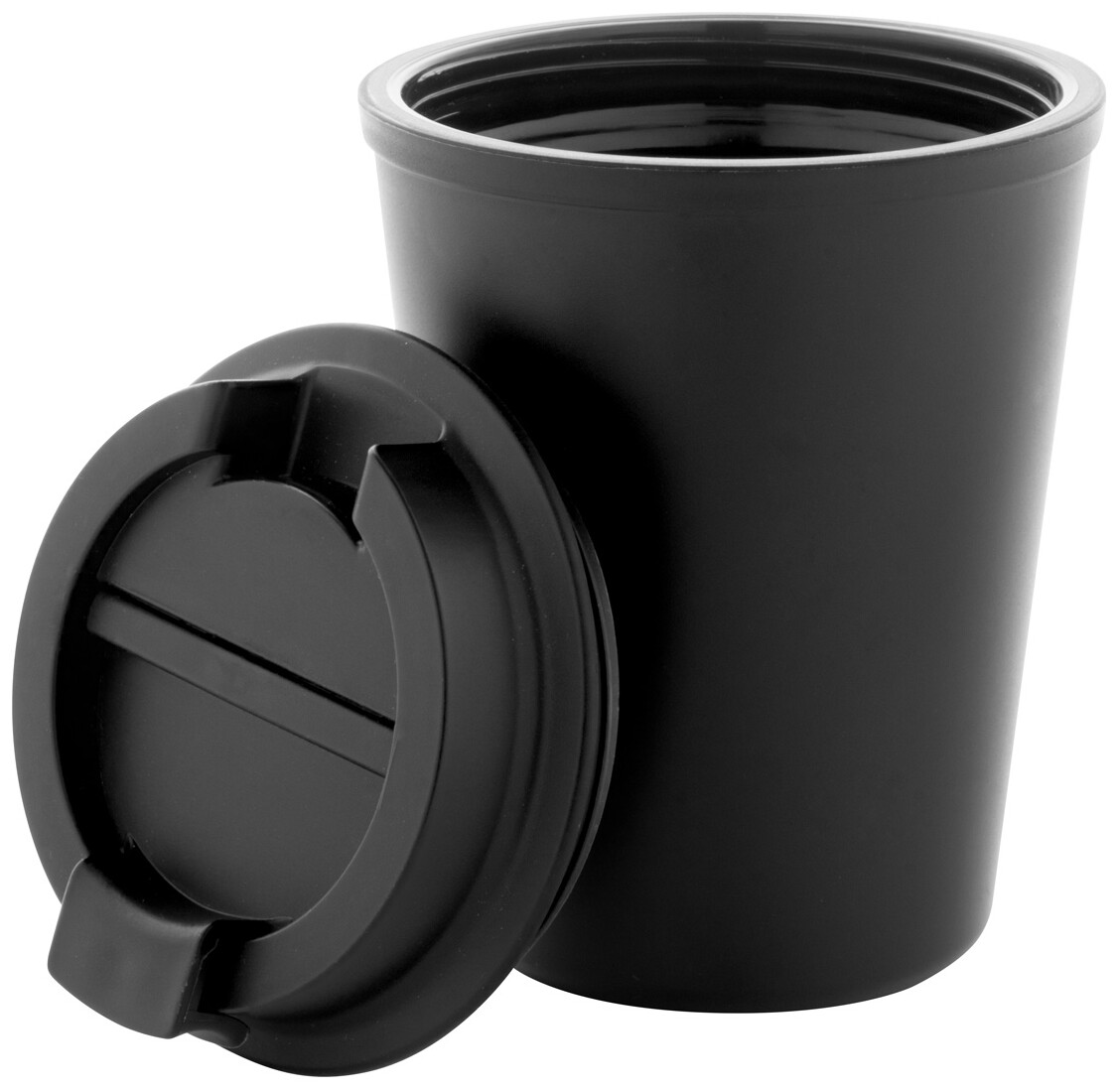 Dvoustěnný termo hrnek z recyklovaného PP plastu s víčkem na pití. 300 ml.