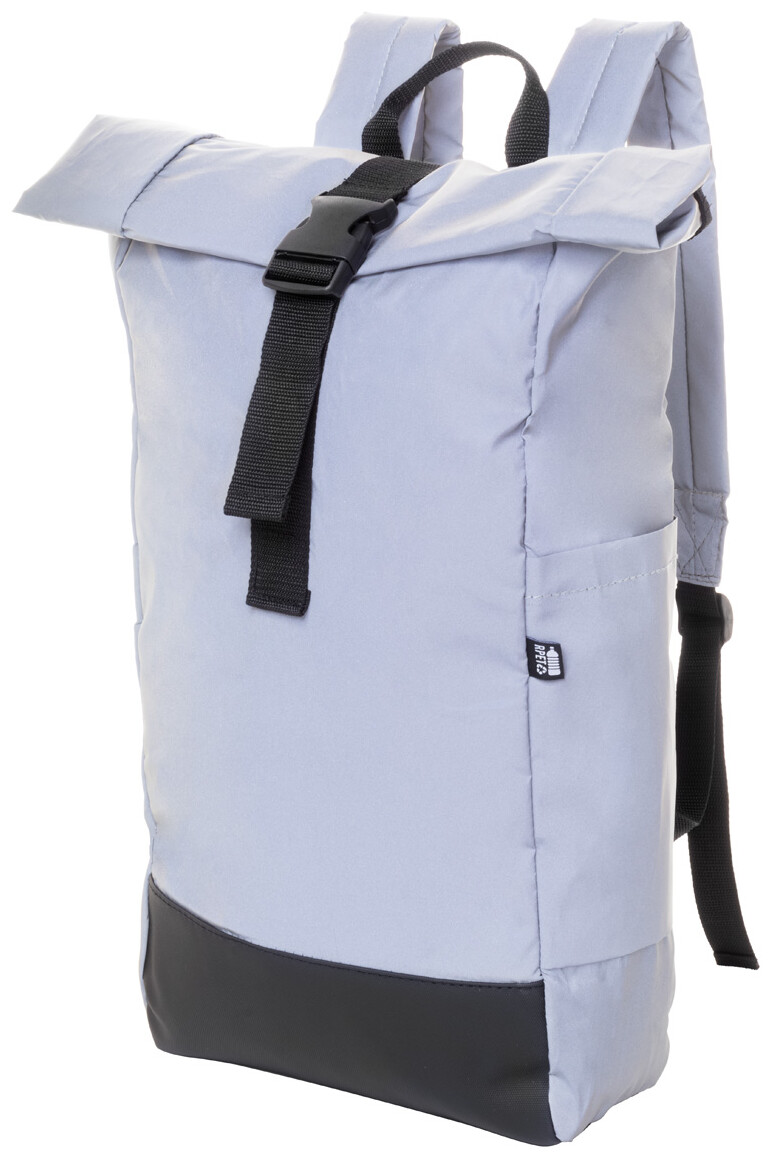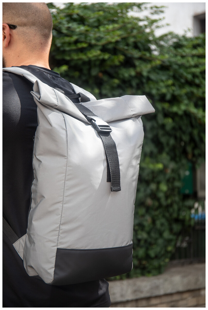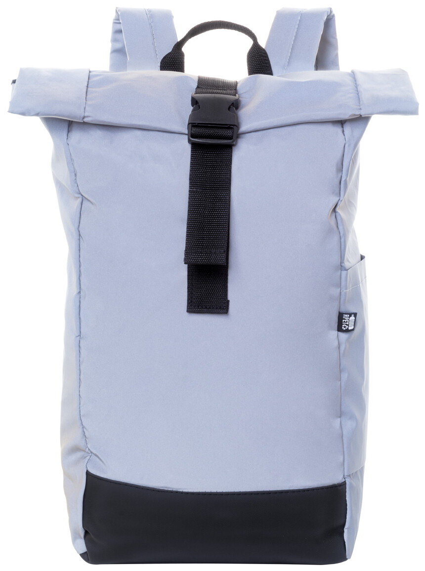 Reflexní rolovací batoh z RPET polyesteru se zapínáním na přezku, hlavní oddíl, skrytá kapsa na zip, polstrovaná přihrádka na notebook (15"), boční kapsa, polstrovaná záda a ramenní popruhy. S výrazným štítkem RPET. Pouze pro propagační účely, produkt se nekvalifikuje jako osobní ochranný prostředek.