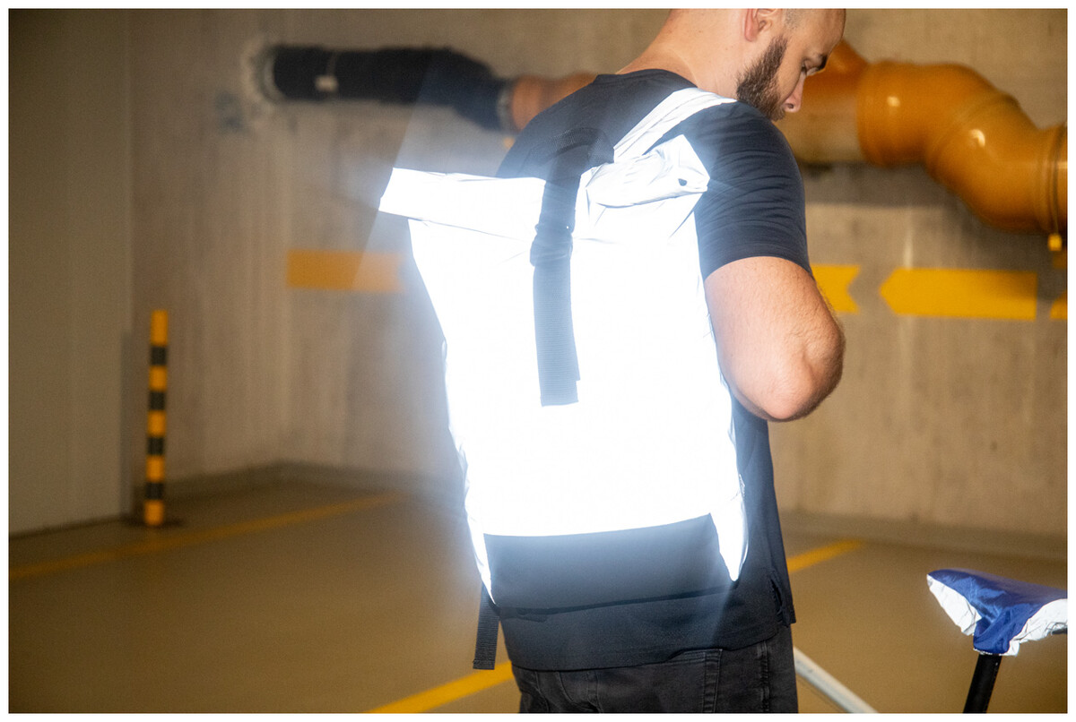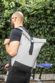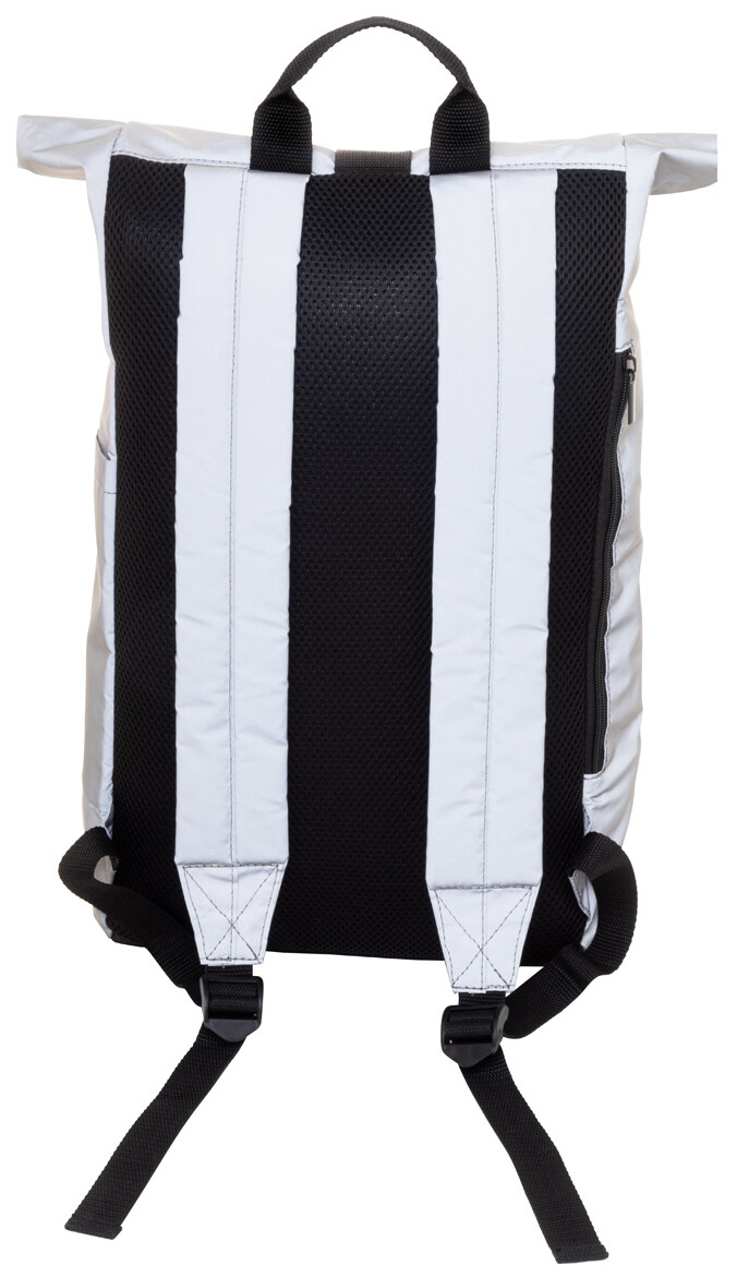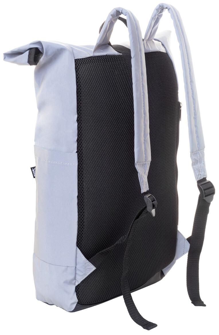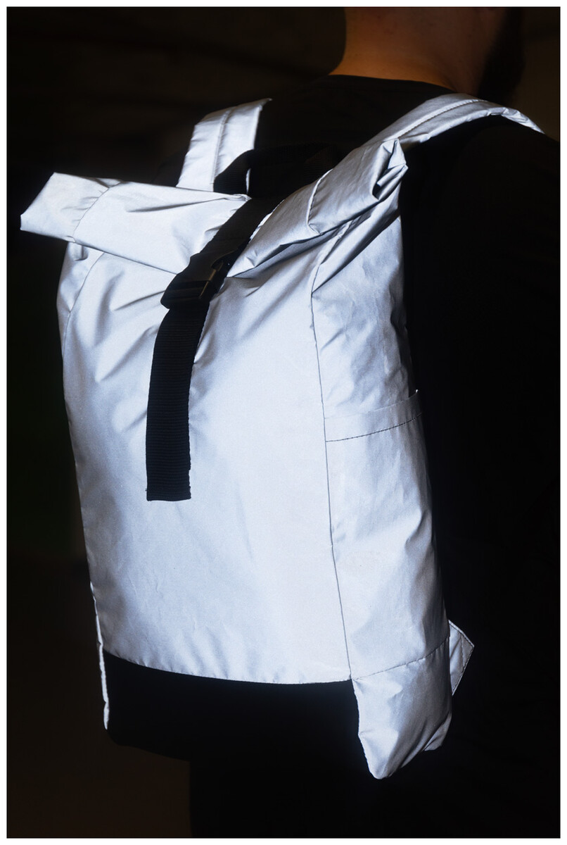 Reflexní rolovací batoh z RPET polyesteru se zapínáním na přezku, hlavní oddíl, skrytá kapsa na zip, polstrovaná přihrádka na notebook (15"), boční kapsa, polstrovaná záda a ramenní popruhy. S výrazným štítkem RPET. Pouze pro propagační účely, produkt se nekvalifikuje jako osobní ochranný prostředek.