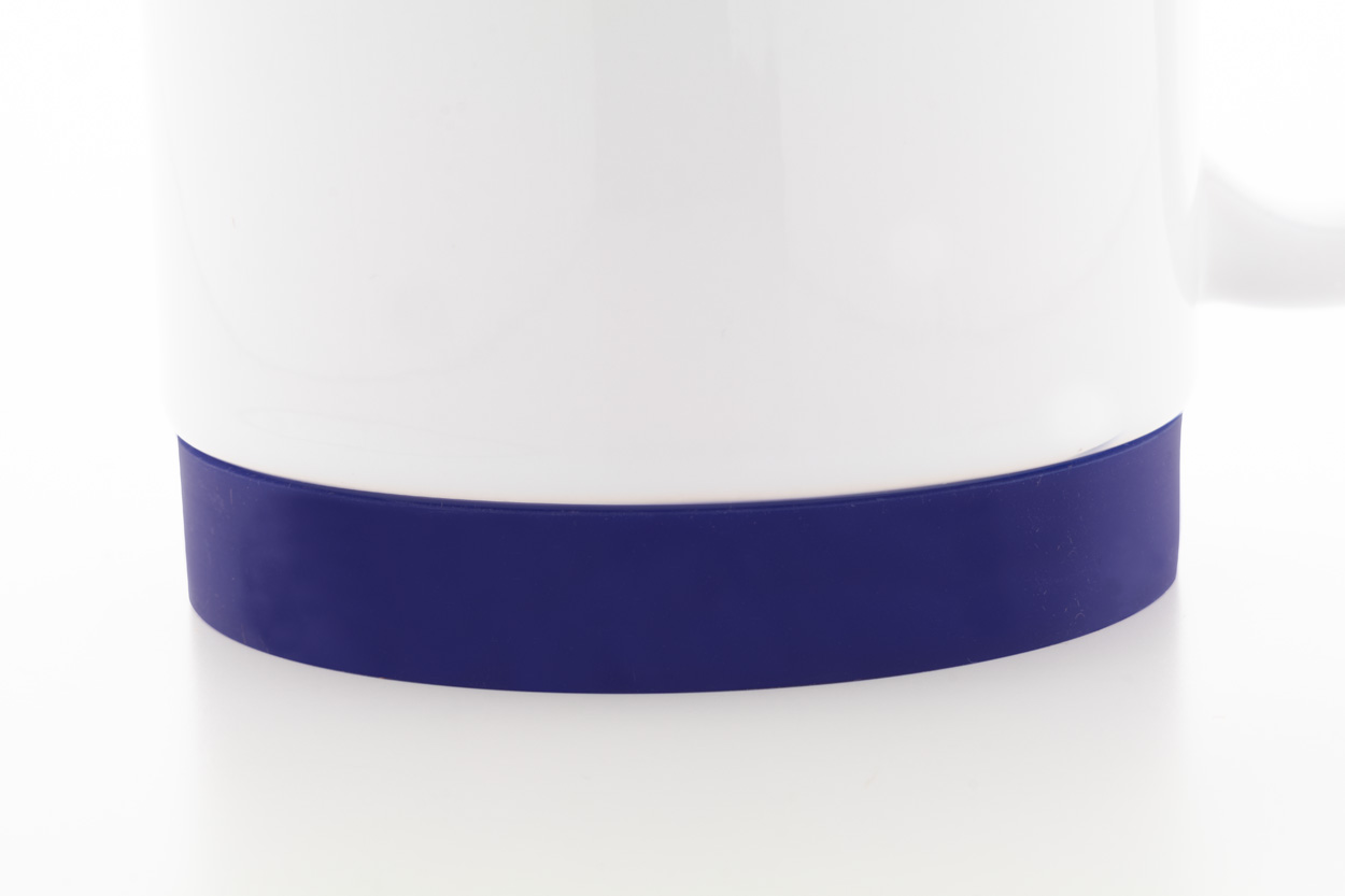 Keramický hrnek na sublimaci s barevným vnitřkem a silikonovým kroužkem v odpovídající barvě, 300 ml. V bílé papírové krabici.