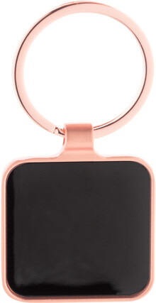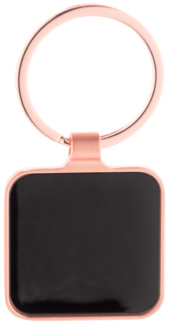 Kovový přívěsek na klíče čtvercového tvaru ve zlatém provedení s bronzovou destičkou. V kraftové papírové krabici.