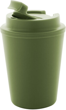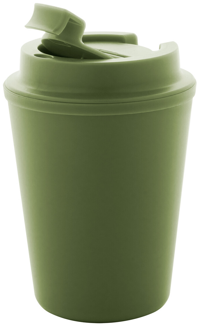 Dvoustěnný termo hrnek z recyklovaného PP plastu s víčkem na pití. 300 ml.