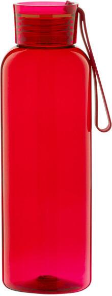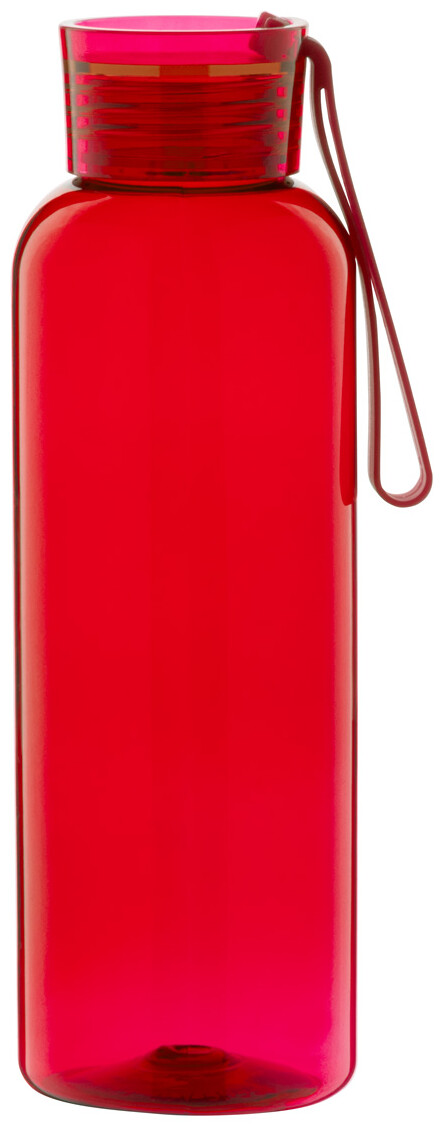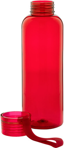 Láhev RPET s víčkem v odpovídající barvě a silikonovým popruhem, 500 ml. Nevhodné pro sycené nápoje.