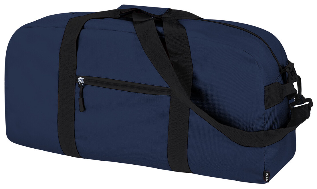Sportovní taška RPET s hlavními přihrádkami na zip a přední kapsou, nastavitelný ramenní popruh. Polyester 600D RPET, s výrazným štítkem RPET.