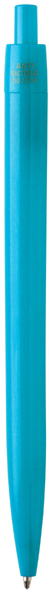 Plastové kuličkové pero s antibakteriálním tělem. Obsahuje přísadu nano stříbra, která zabraňuje růstu bakterií na těle pera. Se stiskacím mechanismem a modrou náplní. V souladu s ISO 22196: 2011.