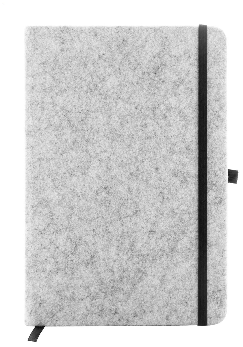 Blok A5 potažený plstí RPET s 80 linkovanými listy z recyklovaného papíru. Se záložkou, gumovým páskem a držákem na pero.