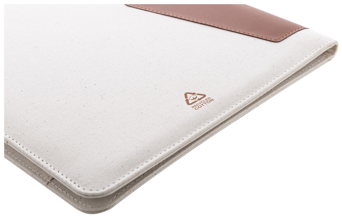 Sloha A4 na dokumenty z recyklovaného plátna a recyklované PU kůže s několika vnitřními kapsami na organizér. S 20 linkovanými listy poznámkového bloku z recyklovaného papíru. 70% recyklovaná bavlna a 30% RPET polyester.