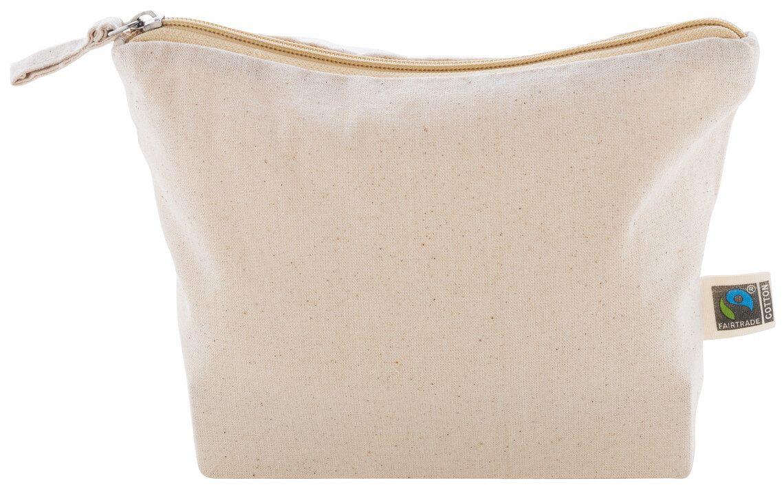 Fairtrade bavlněná kosmetická taštička na zip s výraznou Fairtrade etiketou. 100% Fairtrade bavlna, 180 g/m2.