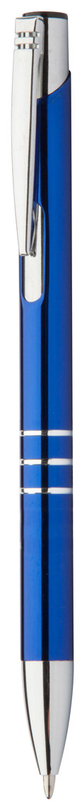 Kuličkové pero z recyklovaného hliníku s metalickým povrchem a modrou náplní.
