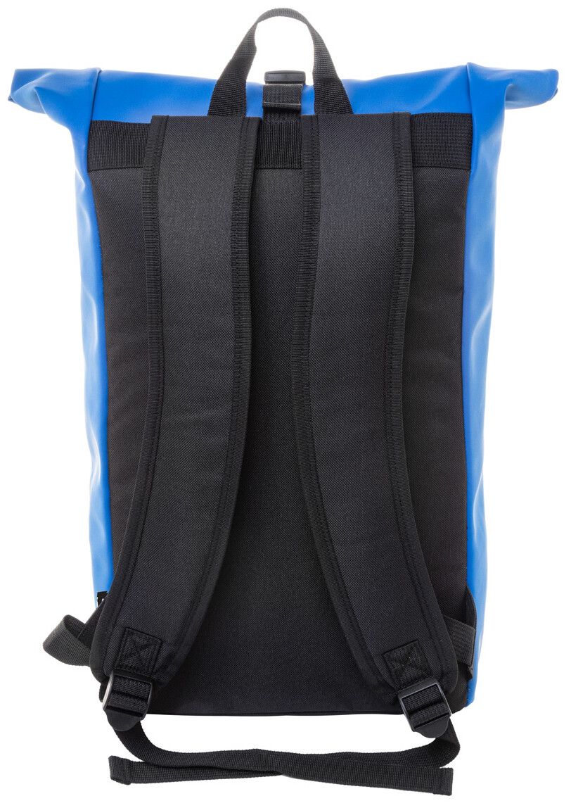 Vodotěsný, měkký rolovací batoh z recyklované PU kůže se zapínáním na přezku, přední kapsou na zip a polstrovanou přihrádkou na notebook (15"). S polstrovanými zády a ramenními popruhy. S výrazným recyklovaným PU štítkem.