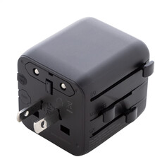 Ultra kompaktní, univerzální celosvětový cestovní adaptér z recyklovaného PC plastu, se zabudovanými zástrčkami pro USA, Evropu, Velkou Británii a Austrálii.
