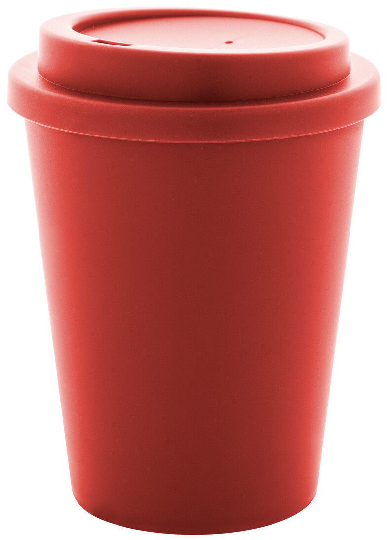 Dvoustěnný termo hrnek izolovaný PP plastem s víčkem na pití. 300 ml.