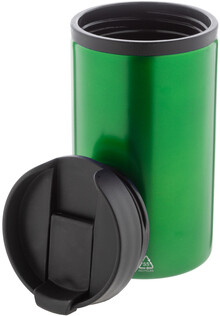 Dvoustěnný izolovaný termo hrnek z recyklované nerezové oceli s PP plastem uvnitř a víčkem na pití. 250 ml.