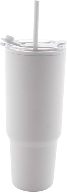 Dvoustěnný termo hrnek izolovaný PP plastem s víčkem na pití a brčkem. 1100 ml.