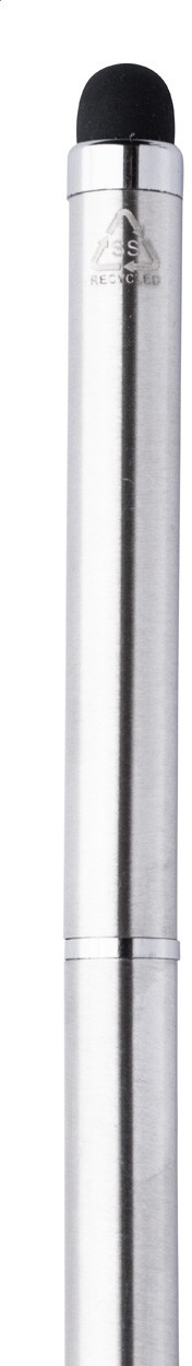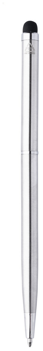 Recyklované kuličkové a dotykové pero z nerezové oceli s chromovanými částmi. S modrou náplní.
