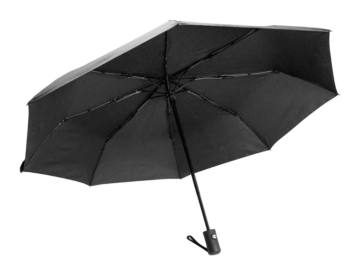 Plně automatický (otevřít/zavřít), větruodolný skládací deštník s 8 panely v pouzdře v odpovídající barvě. S kovovým rámem, sklolaminátovými žebry a pogumovanou rukojetí s poutkem na ruku. Pongee 190T RPET. S výrazným štítkem RPET.