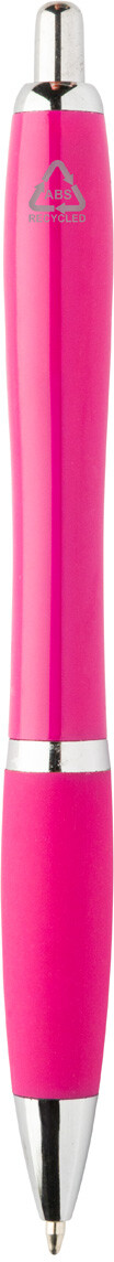 Kuličkové pero z recyklovaného ABS plastu s úchopem v odpovídající barvě a chromovanými částmi. S modrou náplní.