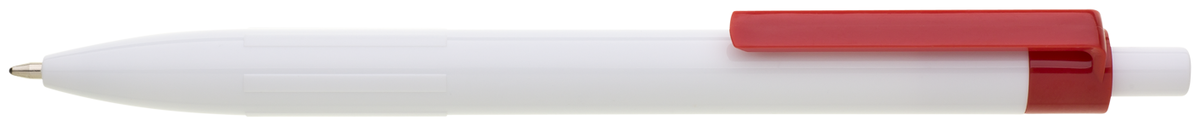 Plastové, kuličkové pero BIARE má bílé tělo, profilovaný úchop a červený klip. Náplň X-20 (120mm), modře píšící.