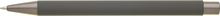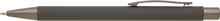 Kovová propiska CAGERI SOFT s hnědo-černými doplňky, s tmavě šedým pogumovaným povrchem. Velkoobsahová modrá náplň.
