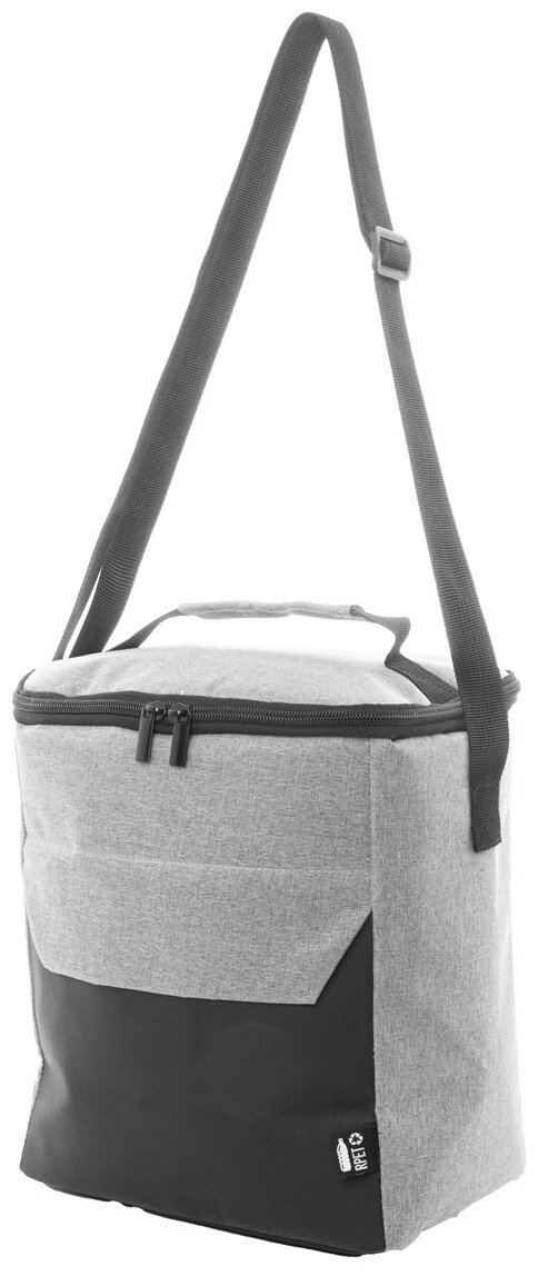 Chladicí taška na zip z RPET s detaily potaženými PU a PEVA vycpávkou. S rukojetí, nastavitelným ramenním popruhem a malou přední kapsou. 600D RPET polyester s výrazným štítkem RPET.