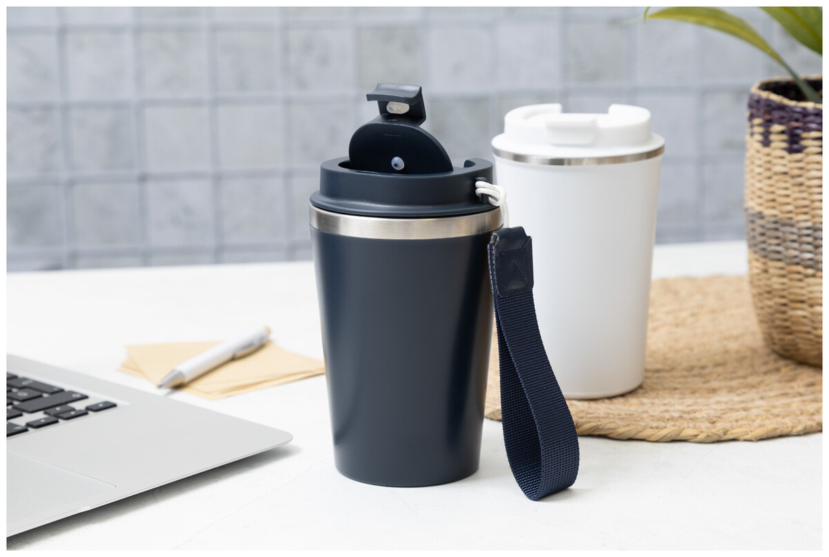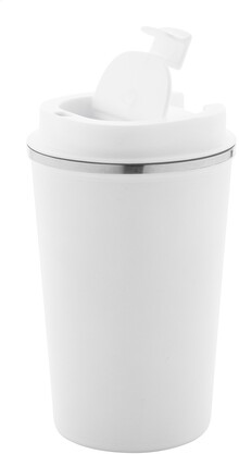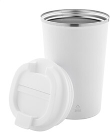 Dvoustěnný termo hrnek z recyklované nerezové oceli s víčkem na pití z PP. 350 ml.