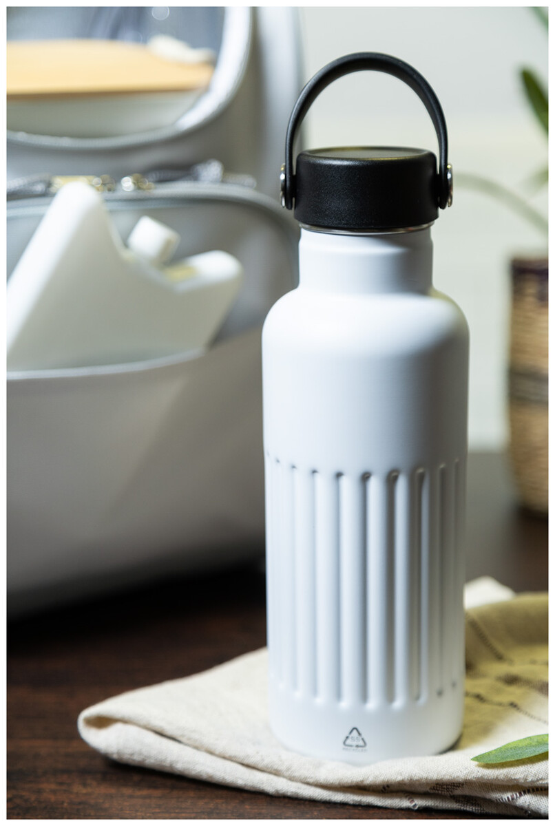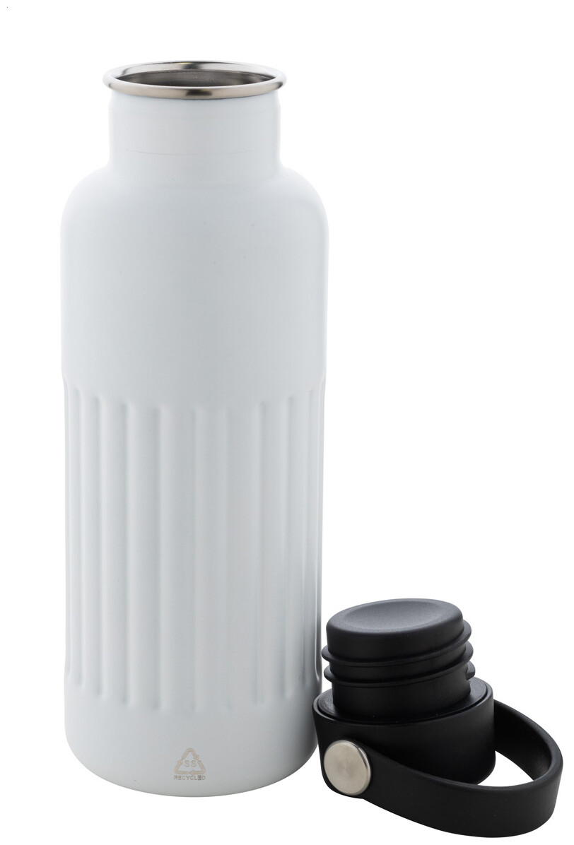 Dvoustěnná vakuově izolovaná láhev z recyklované nerezové oceli s PP plastovým přepravním víčkem. 500 ml.