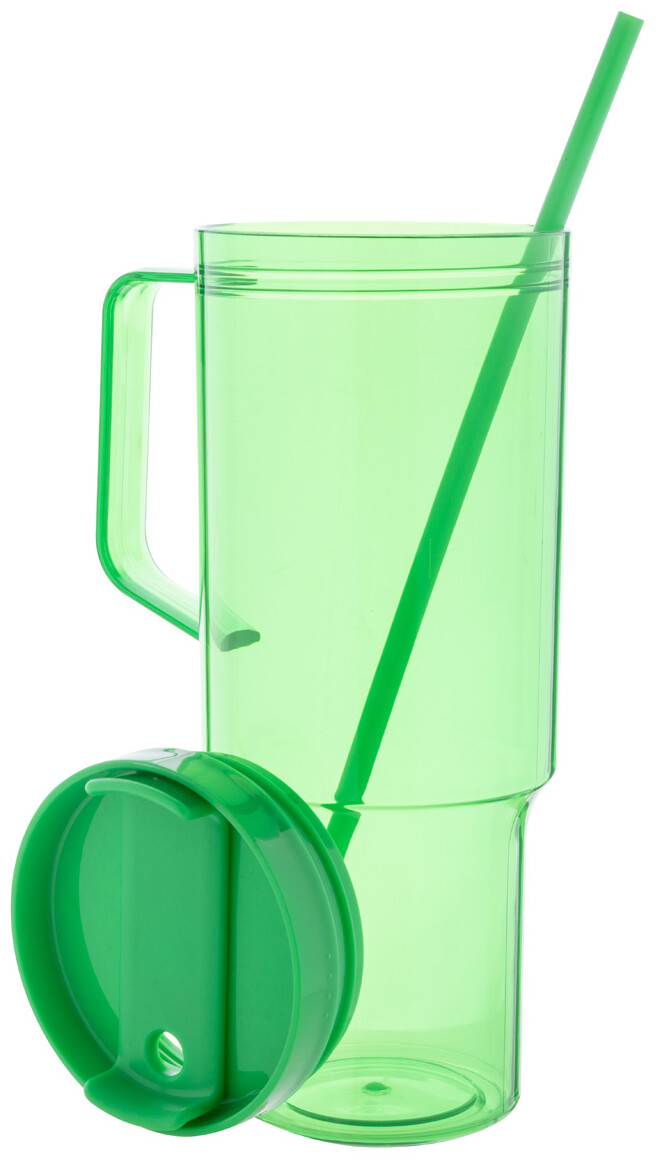 Jednostěnný cestovní hrnek z RPET s PP víčkem na pití a brčkem v odpovídající barvě. 1200 ml.