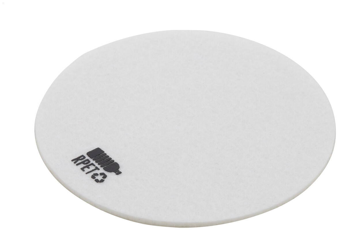 Kulatý plstěný podtácek RPET. S výrazným znakem RPET.