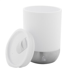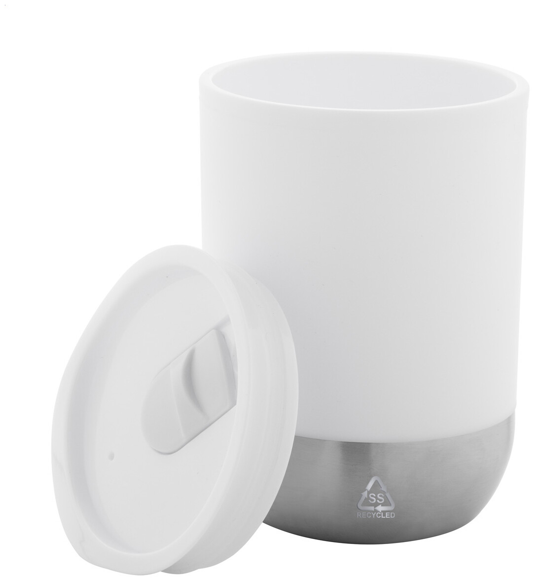 Dvoustěnný termo hrnek s PP plastovou izolací se dnem z recyklované nerezové oceli a víčkem na pití. 300 ml.