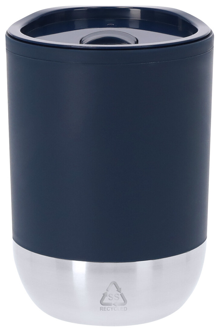 Dvoustěnný termo hrnek s PP plastovou izolací se dnem z recyklované nerezové oceli a víčkem na pití. 300 ml.