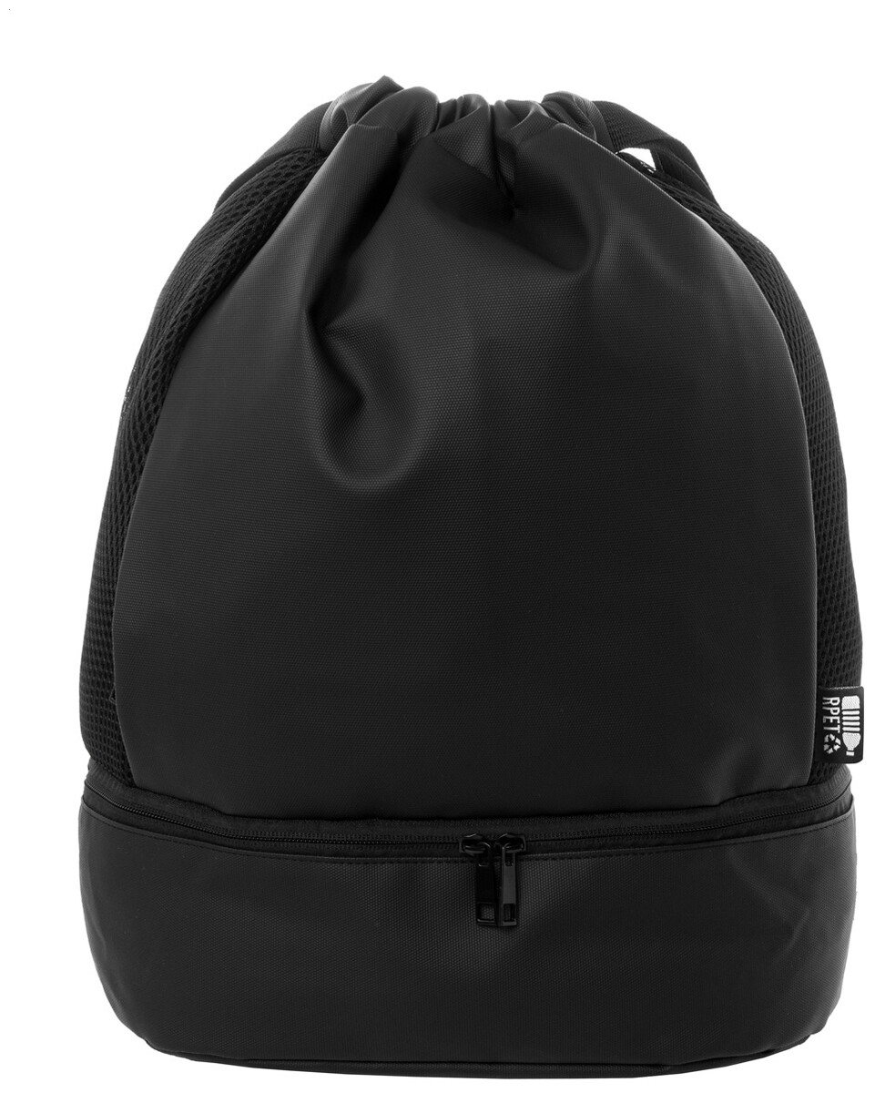 Prémiový vak se stahovací šňůrkou z RPET s přihrádkou na boty na zip, bočními vložkami ze síťoviny a širokými popruhy. Polyester 600D RPET potažený PU s výrazným štítkem RPET.