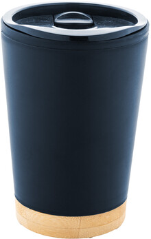 Dvoustěnný termo hrnek izolovaný PP plastem s víčkem na pití a bambusovým dnem, 260 ml.