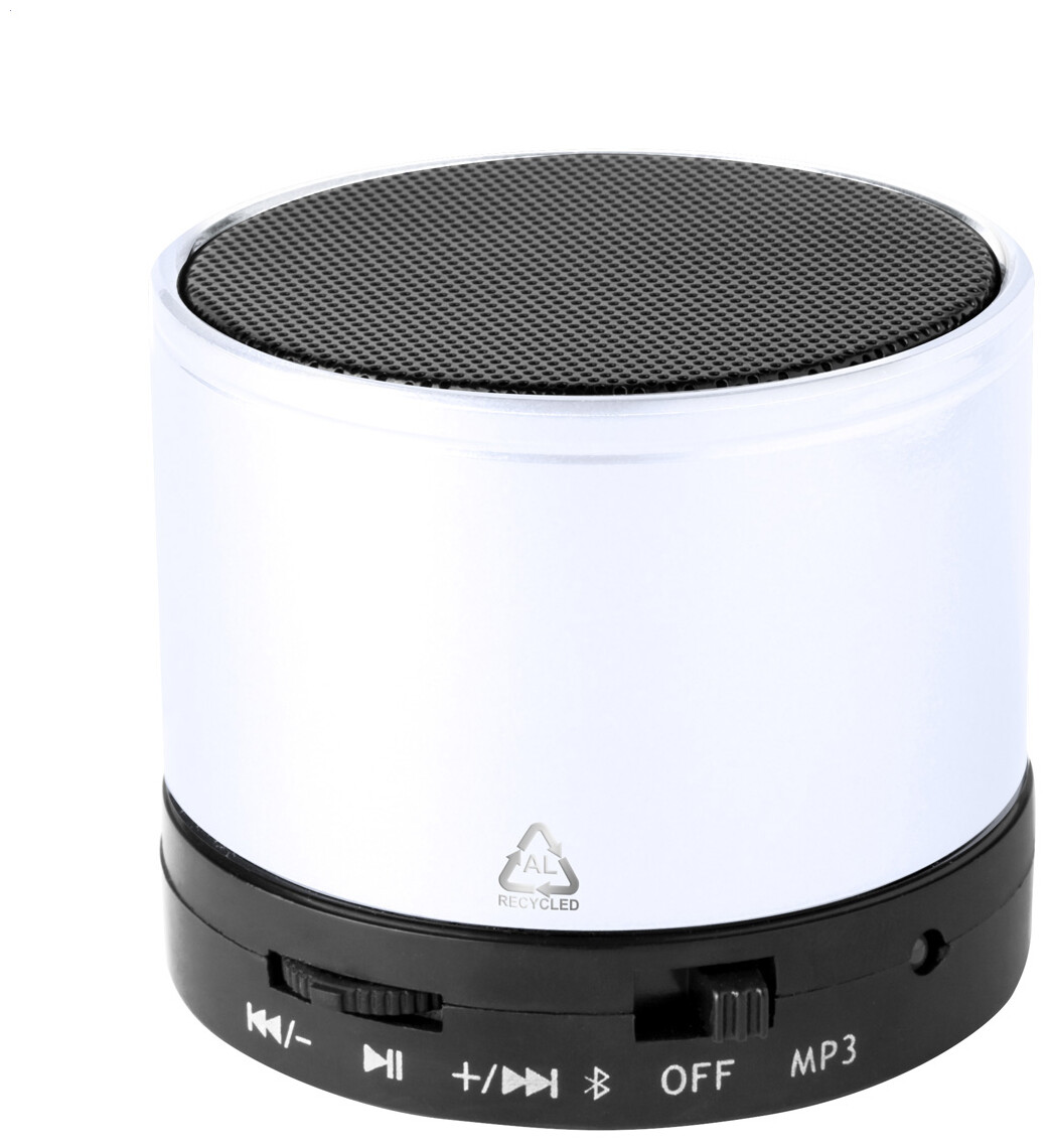 Bezdrátový reproduktor z recyklovaného hliníku a recyklovaného ABS krytu. S rádiem, přehrávačem MP3, funkcí handsfree a vestavěnou dobíjecí baterií (300 mAh). Včetně USB nabíječky a aux-in kabelu.