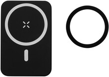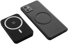 Power banka z recyklovaného ABS s 5000 mAh baterií a vestavěnou magnetickou bezdrátovou nabíječkou (5W). Se vstupem USB-C a portem pro nabíječku. Včetně samolepícího kovového kroužku pro použití magnetické funkce na jakémkoli bezdrátově nabíjecím zařízení. Kompatibilní s iPhone® 12 nebo novějším. Včetně USB nabíjecího kabelu.