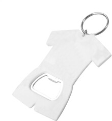 Otvírák na láhve z recyklovaného ABS plastu ve tvaru sportovního dresu s kovovým kroužkem na klíče.
