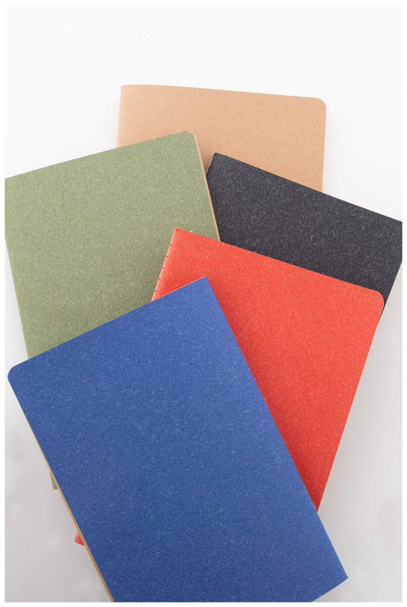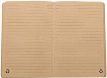 Blok A5 potažený recyklovaným papírem se šitými deskami a 60 linkovanými listy z recyklovaného kraftového papíru.