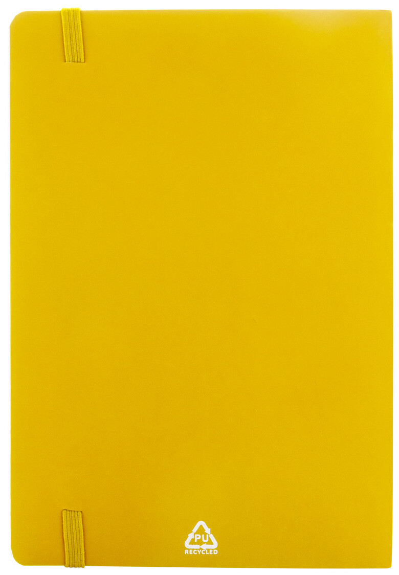 Blok A5 z recyklované PU kůže s měkkou vazbou s 80 linkovanými listy z recyklovaného papíru. Se záložkou v odpovídající barvě a gumičkou.