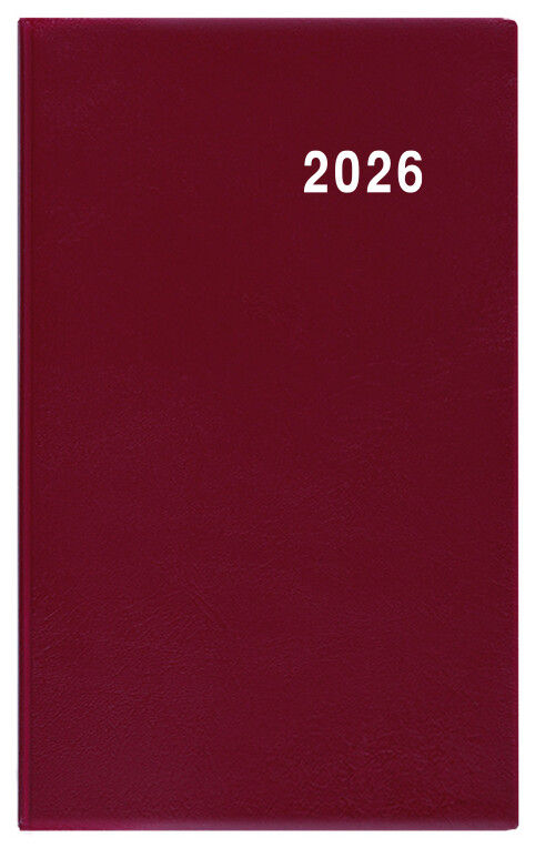 Jednoduchý a praktický týdenní diář vyrobený z jemného hladkého materiálu s polomatným povrchem v barvě bordó. Ideální pro každého, kdo si oblíbil měkkou šitou vazbu.
